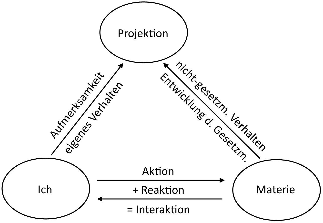 Materie dient dem Leben zur Entwicklung. Das gesetzmäßige Verhalten der Materie bedeutet Reproduzierbarkeit und ermöglicht es Lebewesen, Verhalten an die Materie zu delegieren und so Bewusstseinsenergie für weiterführende Entwicklungen freizubekommen. Bewusstseinsenergie transformiert sich ununterbrochen in materielle Strukturen, welche sozusagen "automatisiert" Aufgaben übernehmen, die zuvor (mehr) Aufmerksamkeit erforderten.